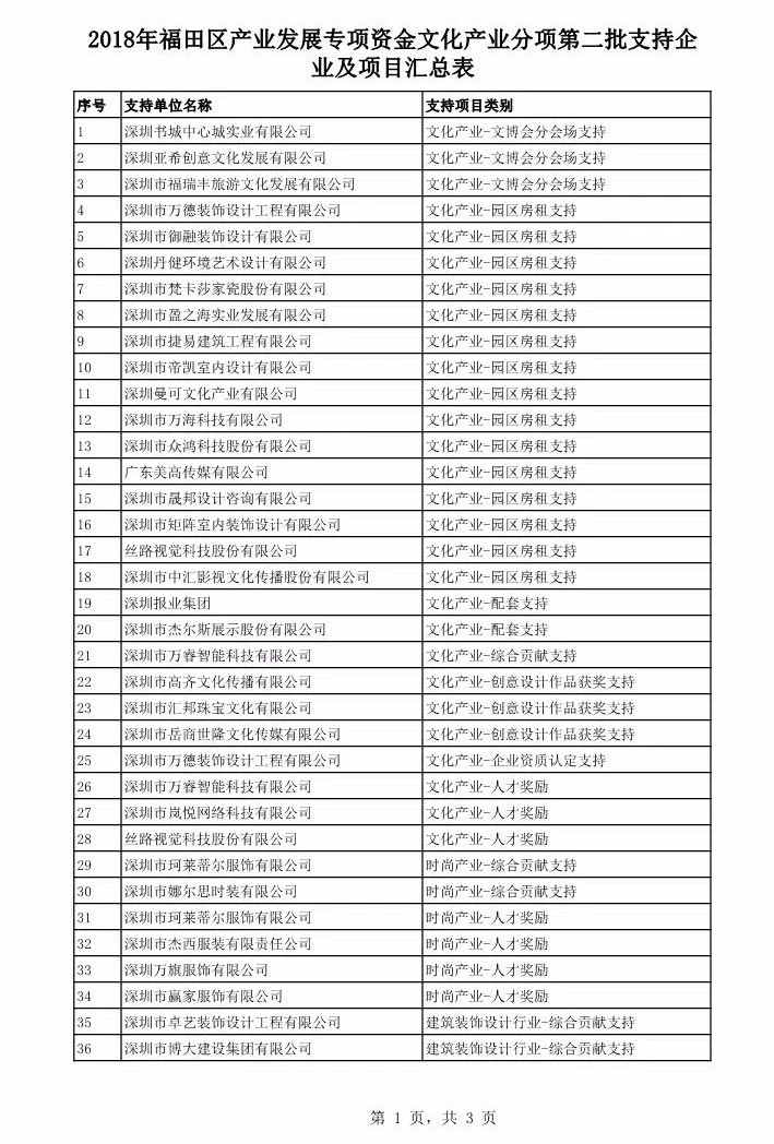 2018年福田區(qū)產(chǎn)業(yè)發(fā)展專項(xiàng)資金文化產(chǎn)業(yè)分項(xiàng)第二批支持企業(yè)及項(xiàng)目匯總表