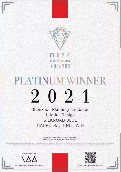 近日,美國繆斯設(shè)計(jì)獎(MUSE Design Award)2021第二季度全球獲獎結(jié)果揭曉。在來自全球102個(gè)國家和地區(qū)的4.3W份優(yōu)秀參賽作品的角逐中,絲路視覺作品「深圳市城市規(guī)劃展」一舉獲得室內(nèi)設(shè)計(jì)類別最高榮譽(yù)鉑金獎!