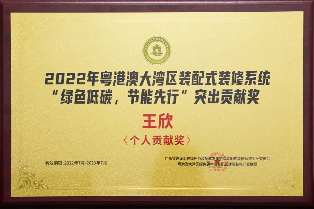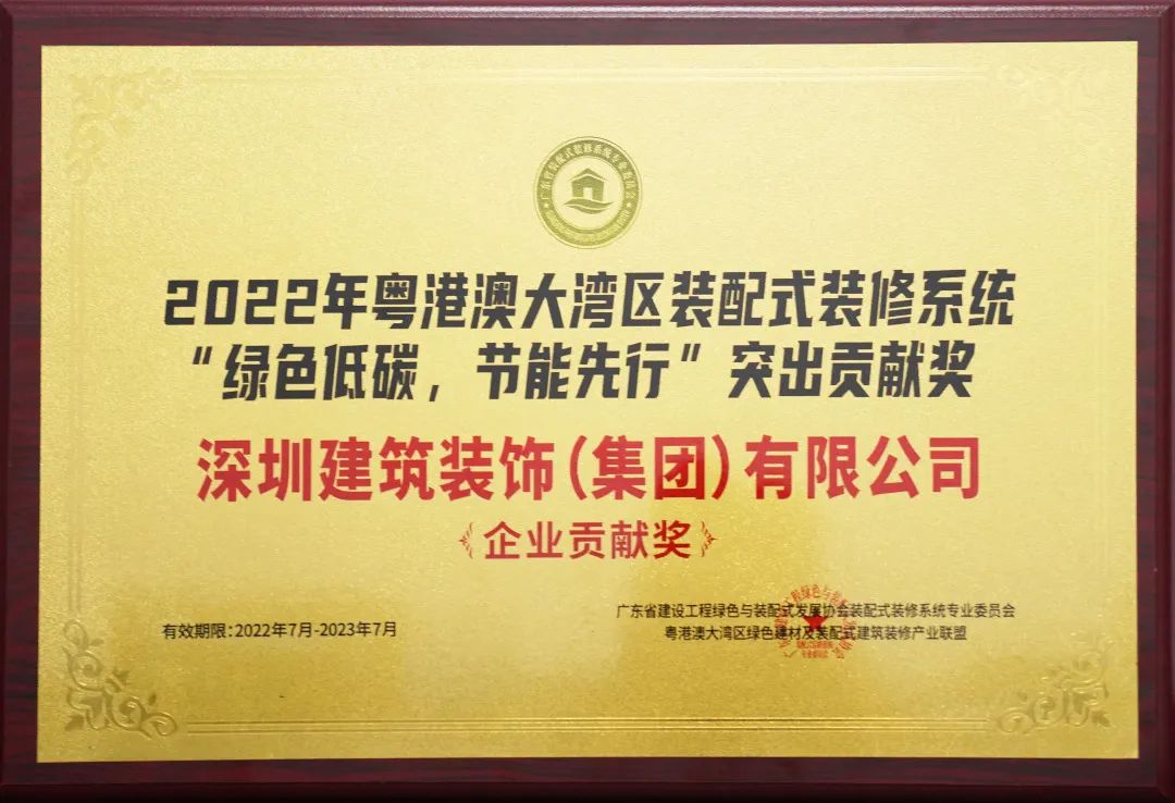 ▲深裝集團(tuán)榮獲2022年粵港澳大灣區(qū)裝配式裝修系統(tǒng)“綠色低碳,節(jié)能先行”企業(yè)貢獻(xiàn)獎(右一)