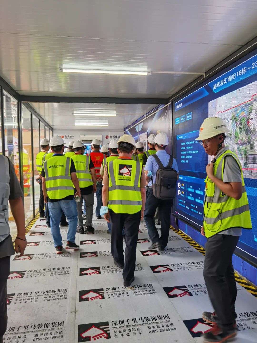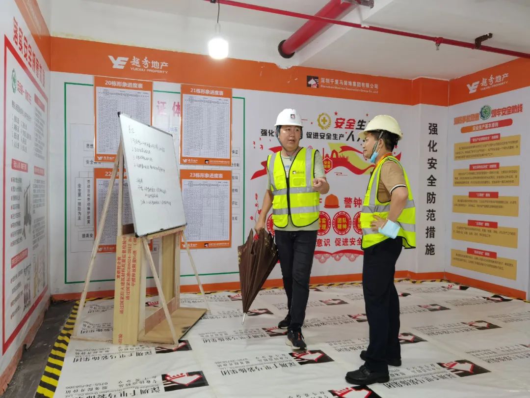 8月13日,越秀地產集團及區(qū)域公司在我司承建的越秀星匯瀚府項目20-23棟二次裝修項目上舉行了安全文明質量標桿工地觀摩活動。出席觀摩會的主要領導有越秀地產集團副總經理王榮濤、越秀地產灣西區(qū)域總經理陸文軍、越秀地產工管部總經理孟慶恩、越秀地產安監(jiān)部總經理凌石等一行人、總包融興建設集團韋新丹董事長,千里馬公司董事長李向東、營銷總監(jiān)時玉香、項目經理李永生陪同參會。