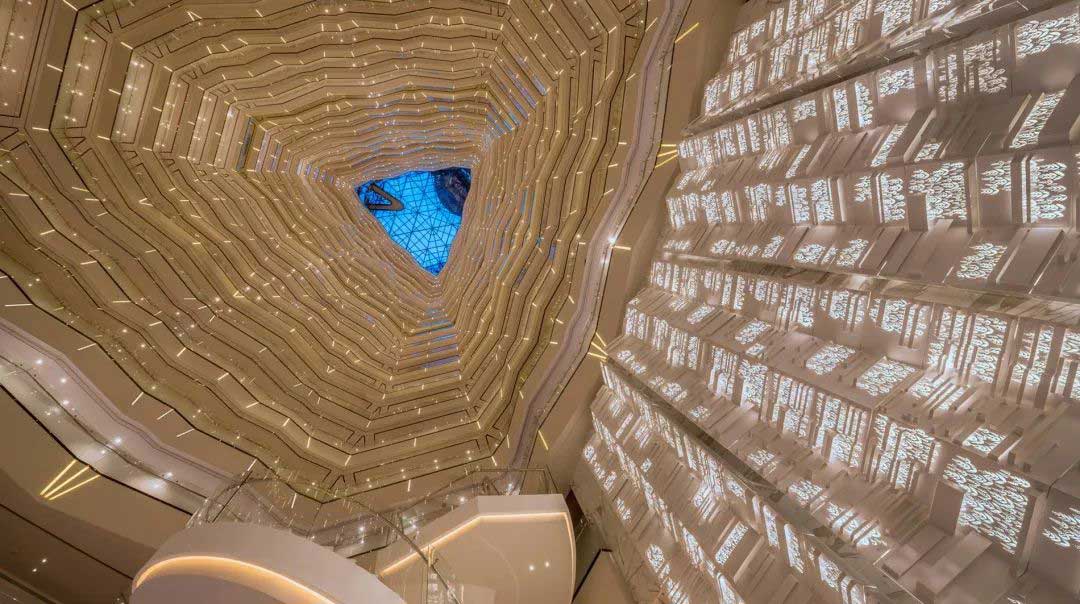 廣州四季酒店矗立在璀璨綺麗的珠江河畔,高踞廣州地標建筑(432米)國際金融中心,與廣州塔隔江相望。此前,亞泰國際承接此專案室內裝飾工程成功摘得魯班獎。