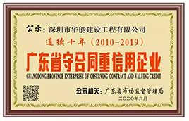 華能建設:連續十年榮獲廣東省“守合同重信用”企業稱號