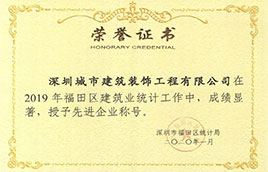 城市建裝:榮獲“2019年福田區建筑業統計工作先進企業”稱號