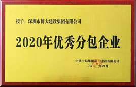 博大建設集團:榮獲中鐵十局“2020年度優秀分包企業”稱號