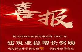 近日,深圳市住建局公布了2020年建筑業穩增長獎勵企業名單及獎勵金額,14家建筑企業獲得了最高1000萬元的深圳政府獎勵。深圳市博大建設集團有限公司(以下稱“博大建設集團”)位列其中,成為深圳市建筑裝飾行業唯一一家獲此殊榮的企業,同時,也是14家獲得獎勵企業中僅有的兩家民營企業之一。