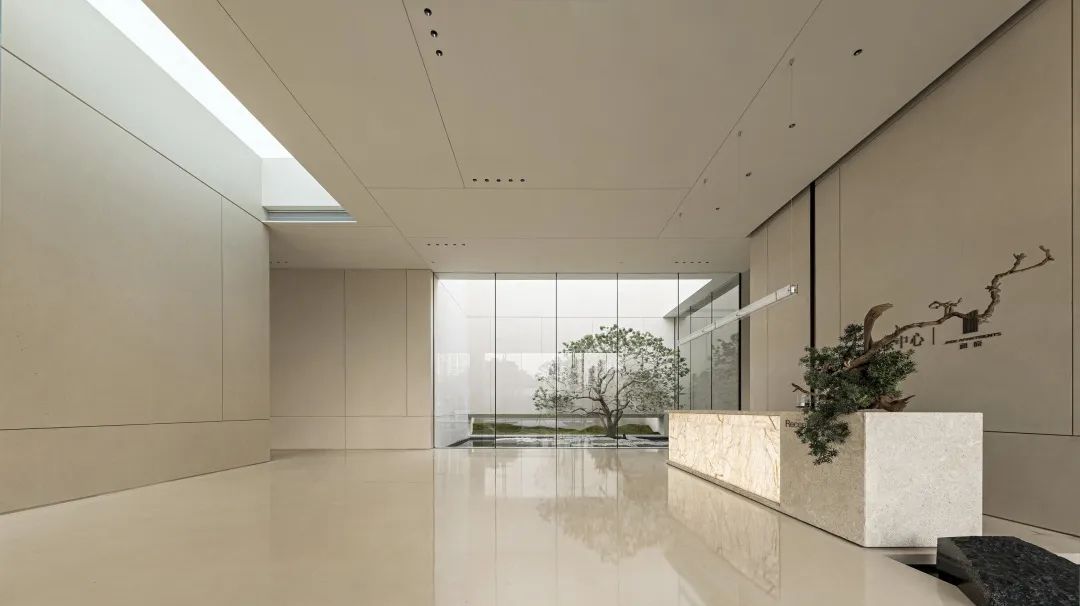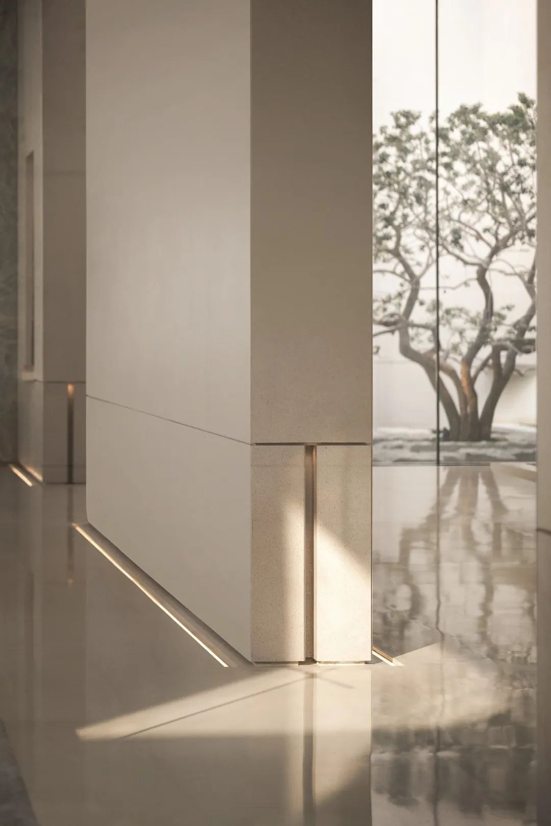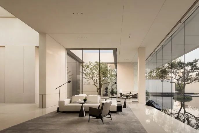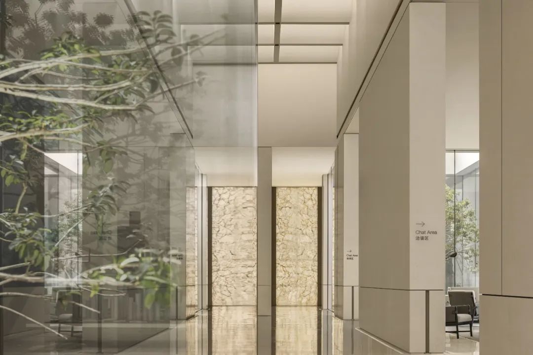 在這個空間中設計團隊同樣運用了這樣的空間表達手法,在室內向外望去,也並非是原先的景色,規整的長方形像是畫卷的邊框,樹的生長、光影遷移、人的來去令它的內容時刻流動變換,或清寂、或繁鬧......