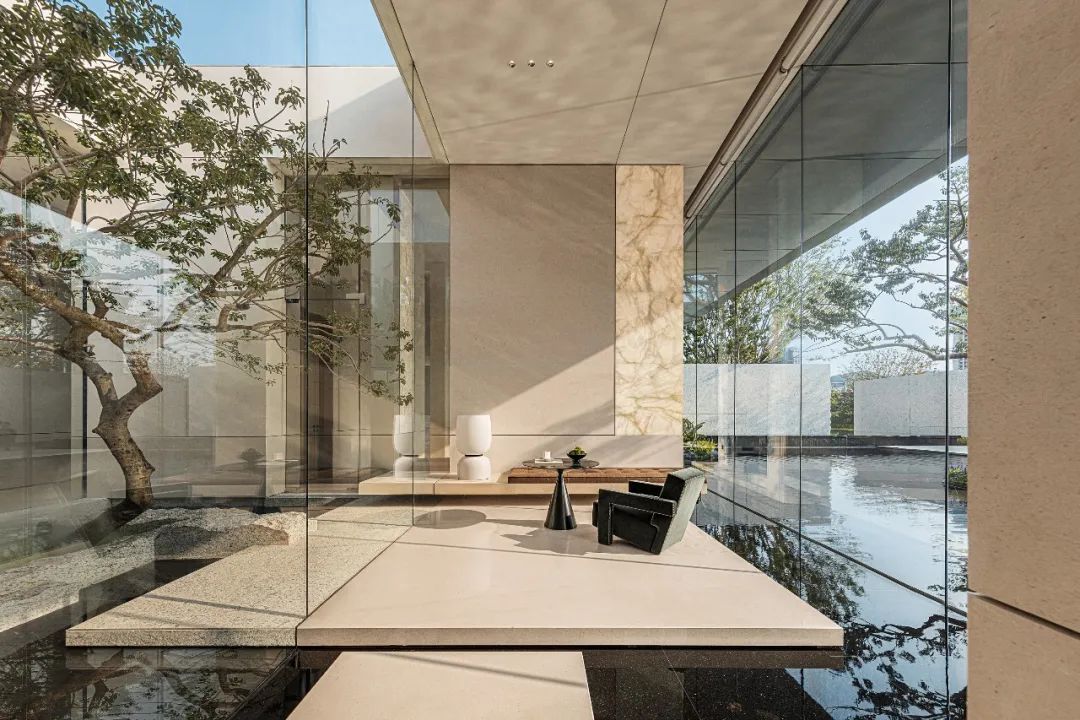 在這個空間下人的活動不僅局限於社交,同時還囊括由庭院的簡約山水帶來的生活體驗,從起皺水面、搖動樹梢中放慢生活的節奏,細細品味天光雲影的曖昧。