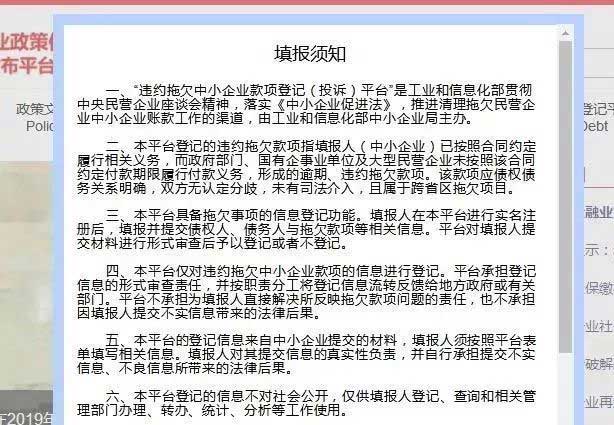 違約拖欠中小企業(yè)款項登記(投訴)平臺,主要受理國家機關(guān)、事業(yè)單位和大型企業(yè)違約拖欠中小企業(yè)貨物、工程、服務(wù)等款項的登記(投訴):