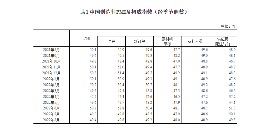 8月份,制造業采購經理指數(PMI)為49.4%,低于臨界點,比上月上升0.4個百分點,制造業景氣水平有所回升。