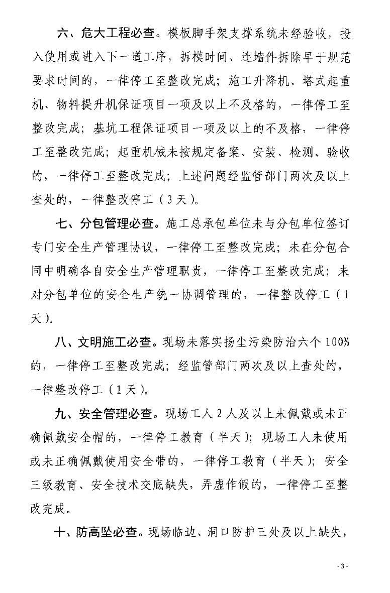 核心提示:8月21日,深圳市福田區住房和城鄉建設局發布了關于嚴格執行建筑施工“十必查、十停工”相關規定的通知,通知強調,各施工單位要以最高要求、最強力量、最實措施、最大力度做好安全事故防范,問題嚴重者一律停工整改至完成。
