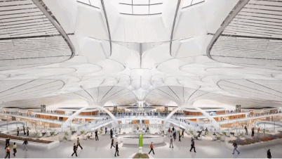 北京大興國際機場的屋頂中心由一個六邊形天窗、六條條形天窗、八個氣泡窗相互連接,組成頂部主要自然采光體系,可以讓室內(nèi)自然光采光面積超過60%。