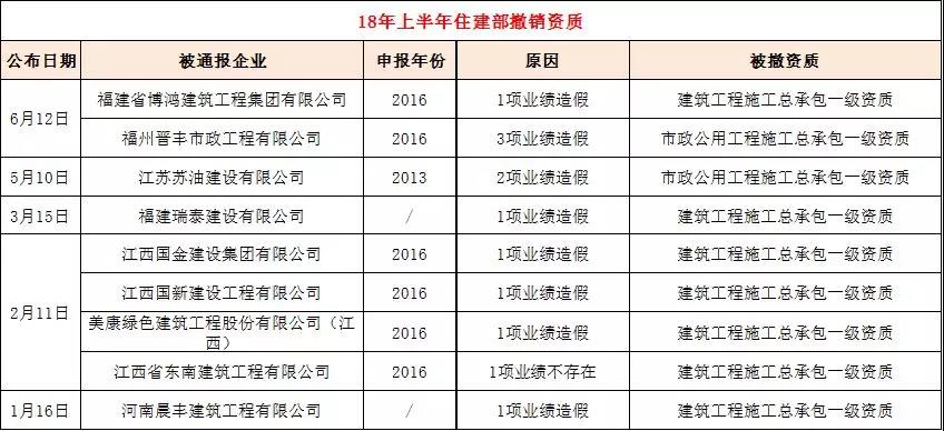 上半年(1--6月份),有16家企業的18項資質被住建部撤銷,業績造假數目更是多達58項。