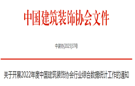 關(guān)于開展2022年度中國建筑裝飾協(xié)會行業(yè)綜合數(shù)據(jù)統(tǒng)計(jì)工作的通知