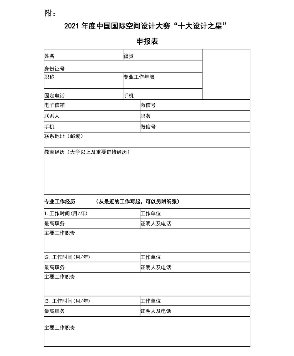 關(guān)于2021年度中國國際空間設(shè)計大賽“十大設(shè)計之星” 申報說明